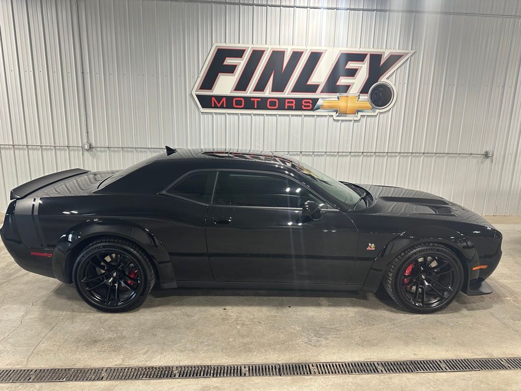 Pitch Black Clearcoat 2021 Dodge Challenger R/T Scat Pack Widebody Clean CARFAX. Odometer is 9099 miles below market average! Full tank of gas with vehicle purchase! All vehicles fully serviced inspected and ready to go. We are a small town dealer and we stand behind our vehicles and our customers!